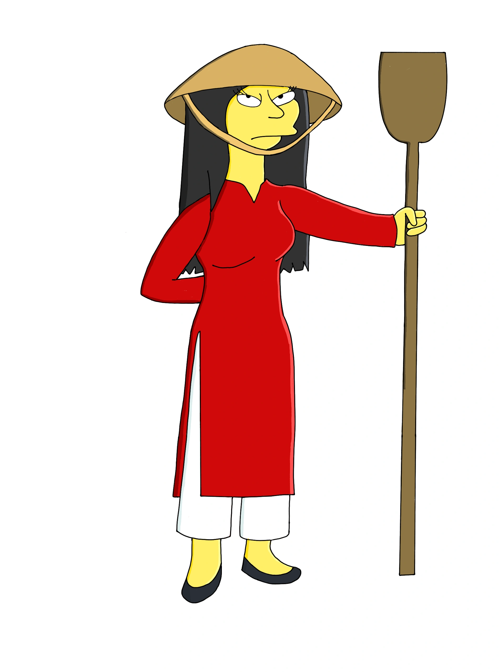 When she moved to Springfield, Hien wore a dark purple tank top, khaki pants, and sneakers.